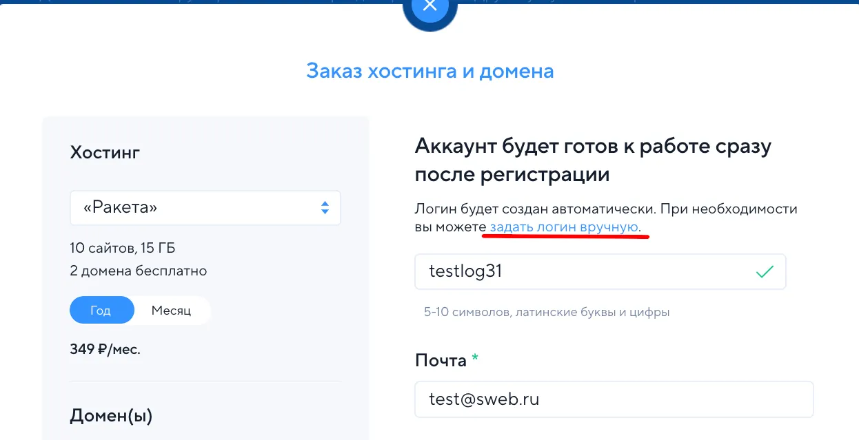 При создании аккаунта автоматически присваивается произвольный логин. Он формируется из e-mail или домена в заказе и не изменяется.