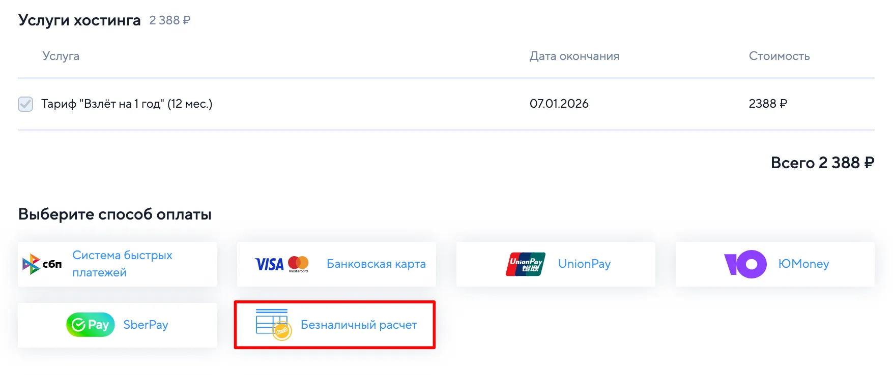 Счет на оплату услуг SpaceWeb формируется только на организацию — владельца аккаунта.
