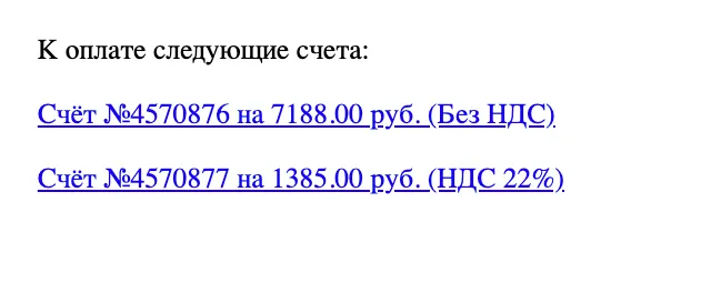 Для услуги "Выделенный сервер" отправка автоматических уведомлений с ссылкой на счет временно недоступна