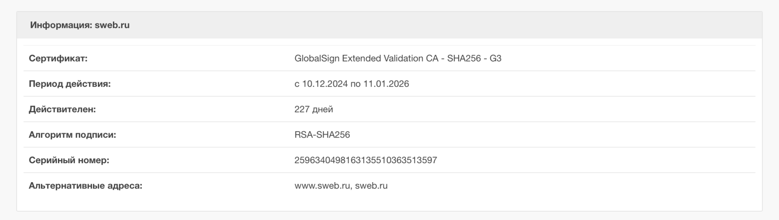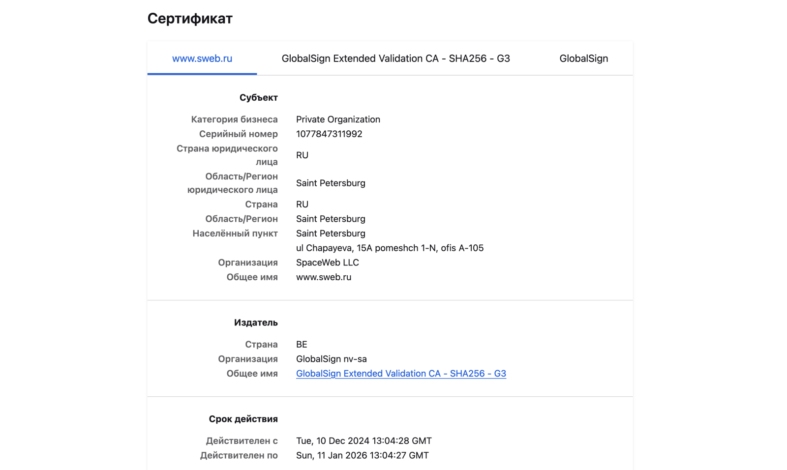 - Убедиться в легитимности сайта. Сертификат содержит информацию о владельце домена, дате выдачи, сроке действия и удостоверяющем центре (CA). Она помогает распознать поддельные или мошеннические ресурсы.