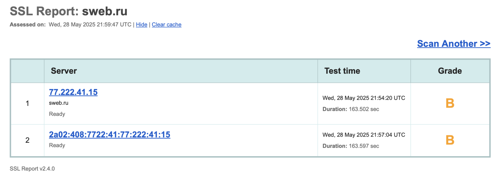Профессиональный инструмент, который выполняет глубокий анализ SSL-конфигурации сервера. Среди ключевых возможностей: