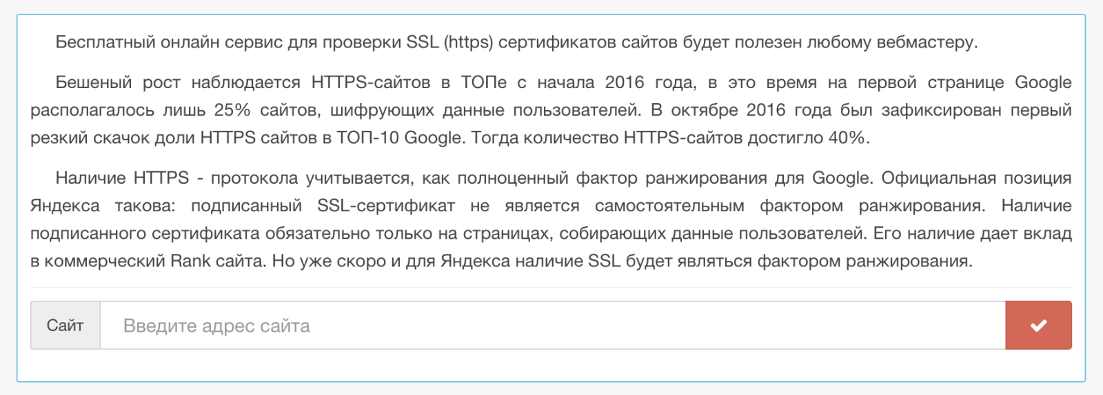 Полезен тем, что позволяет вручную указать порт сервиса (по умолчанию — 443) и отслеживать истечение срока действия сертификата по e-mail. При этом сервис обещает не отправлять рекламные рассылки. Удобен для технических специалистов и владельцев сайтов.