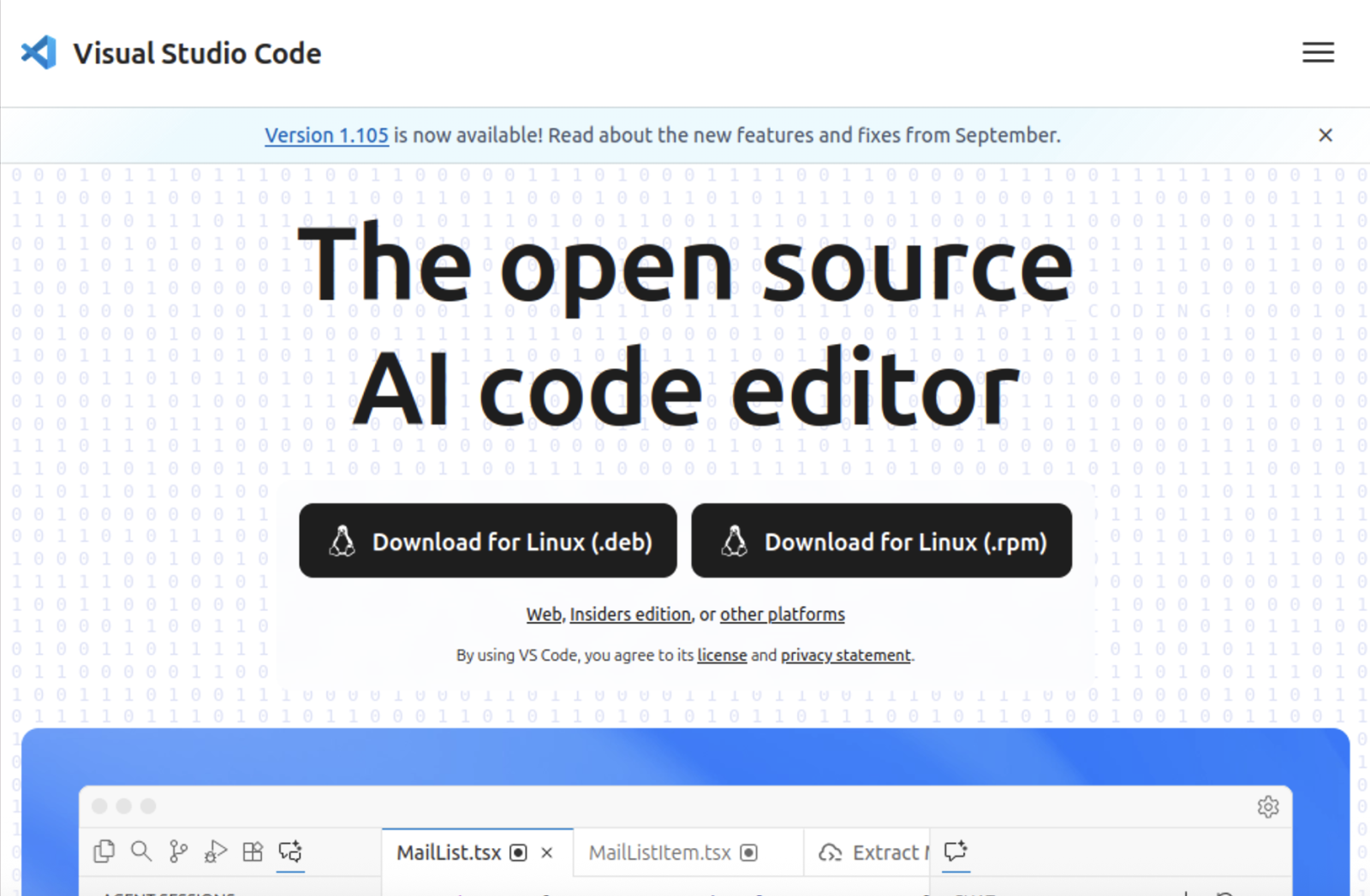 - Скачайте установочный файл, например code_1.105.1-1760482543_amd64.deb.