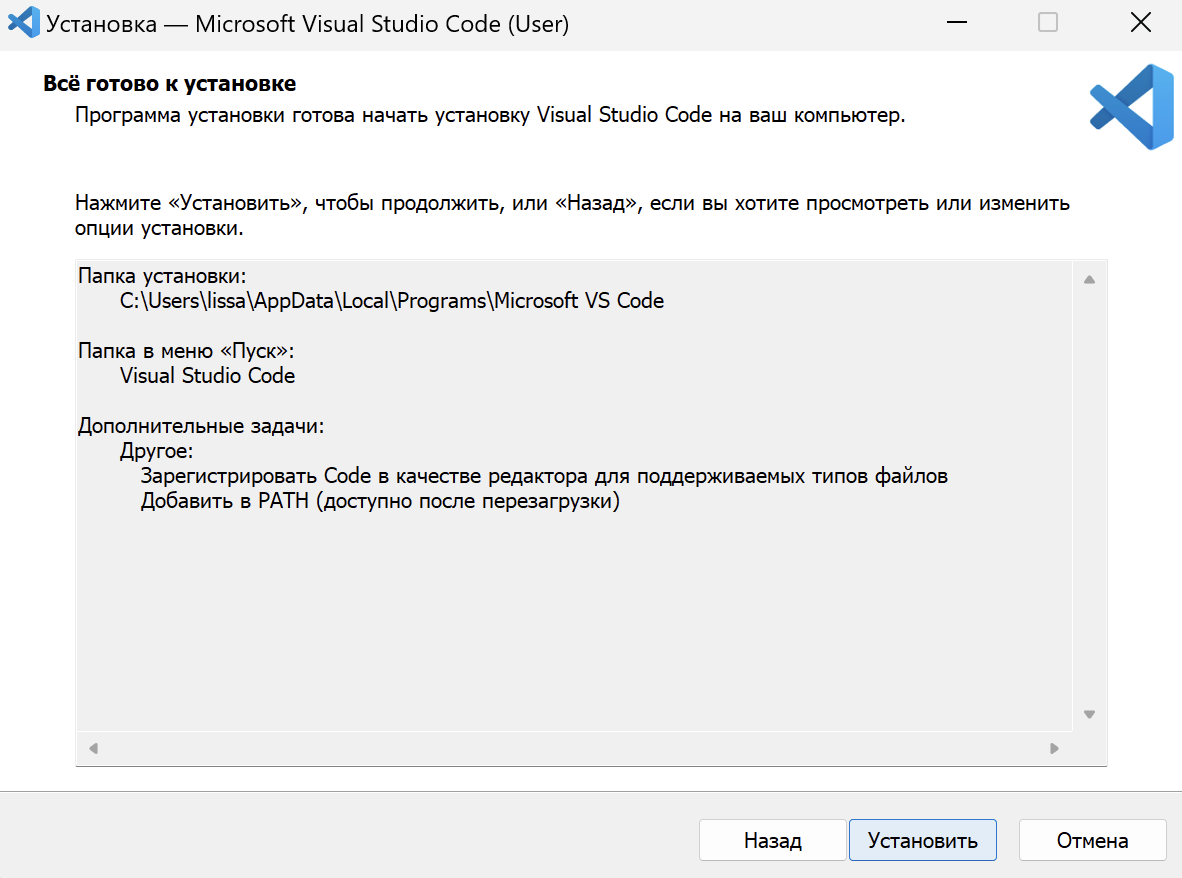 Установка Visual Studio Code на Windows