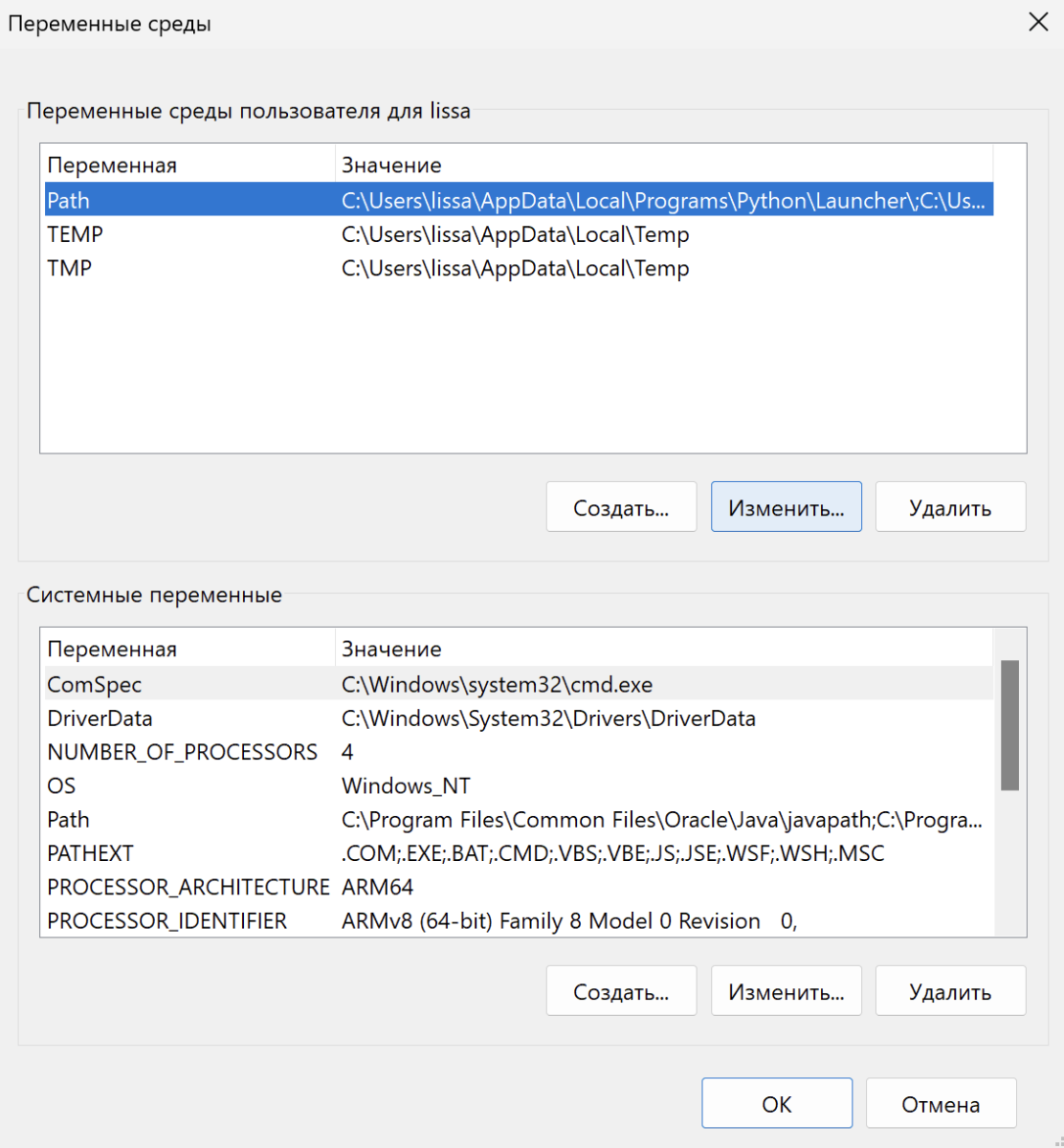 В разделе «Переменные среды пользователя» выберите переменную Path и нажмите «Изменить».