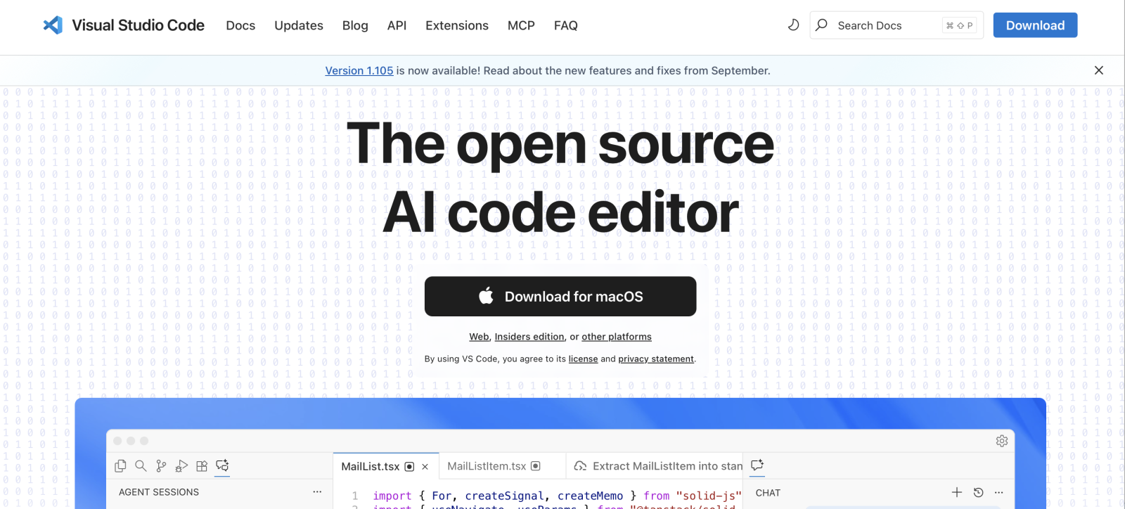 - Перейдите на официальный сайт Visual Studio Code и нажмите кнопку Download for macOS, чтобы скачать установщик.