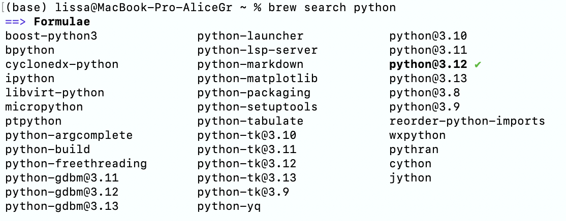 - Проверьте доступные версии Python: