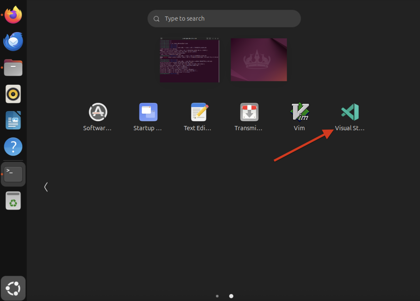 После установки Visual Studio Code можно запустить через меню приложений
