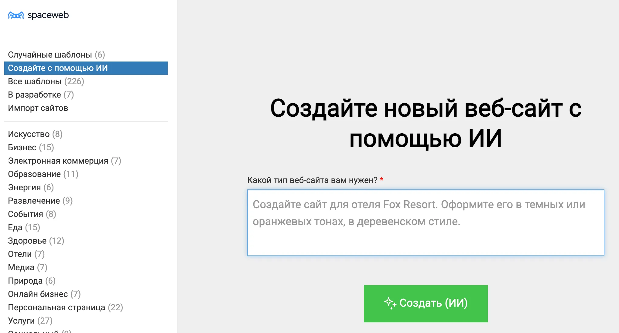 - Какие задачи решает конструктор сайтов с ИИ от SpaceWeb