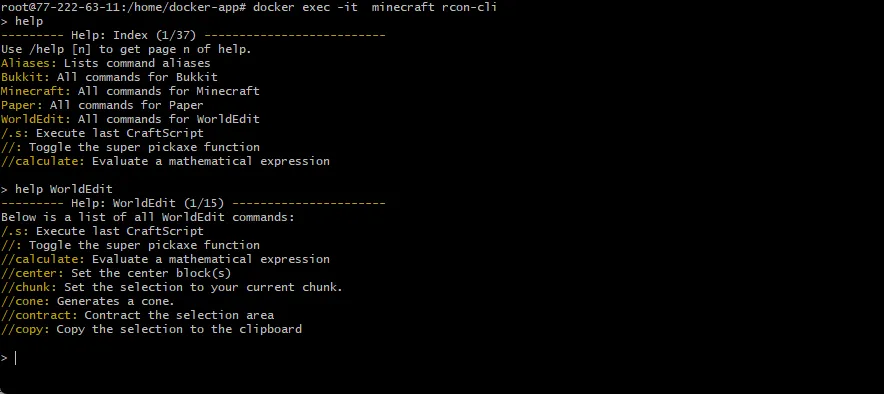 docker exec -it minecraft rcon-cli